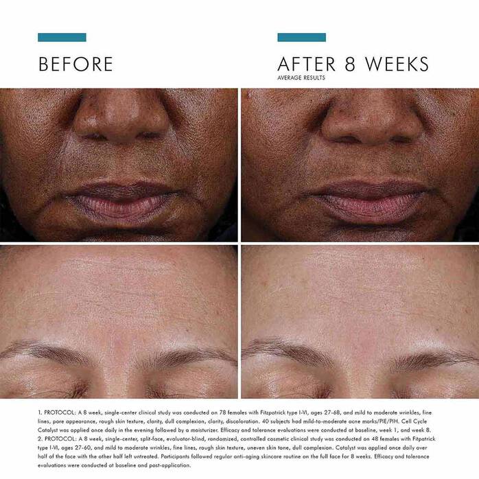 Cell Cycle Catalyst™ es un sérum de uso diario, de aplicación en capas, clínicamente probado para potenciar los resultados antienvejecimiento. Enriquecido con un complejo multiácido al 7,7 % (alfahidroxiácidos y betahidroxiácidos) y un 1 % de taurina, Cell Cycle Catalyst™ está clínicamente probado para exfoliar suavemente y mejorar la renovación celular en la superficie de la piel, suavizando la textura, mejorando la apariencia de la decoloración y las líneas de expresión visibles. Este sérum exfoliante antienvejecimiento ayuda a mantener una hidratación óptima para favorecer una barrera cutánea saludable.